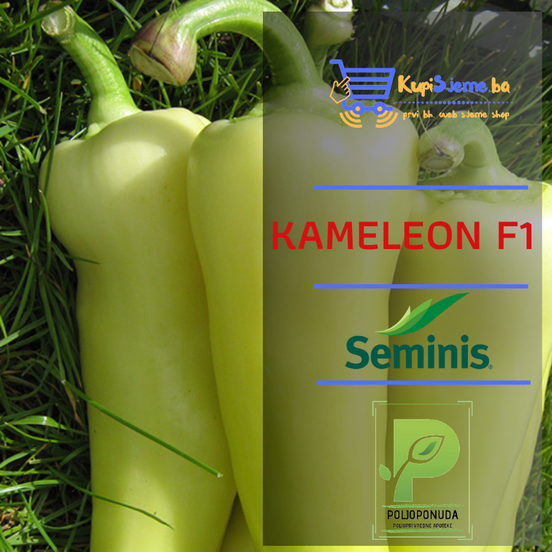 Kameleon F1 je vrlo rani hibrid slatke paprike izduženog oblika, visokog kvaliteta, koji se već izdvojio kao vodeći hibrid ovog tipa kod nas. Biljke su snažne, bujne, sa jakim bočnim granama, odlične tolerancije na stres. Krupnoća plodova je oko 120g, dužina 15cm sa prosječnom širinom oko 7cm. Produkcija plodova je izrazito visoka, a u fiziološkoj zrelosti prelazi u crvenu boju. Rezistencija: TO=Tobamo(Tobamovirus)